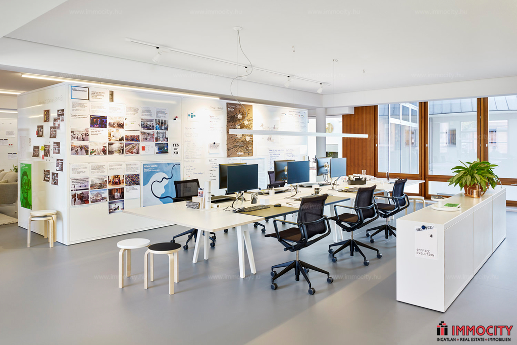 Az iroda bútorozatlanul bérelhető. A belső fotó látványkép.