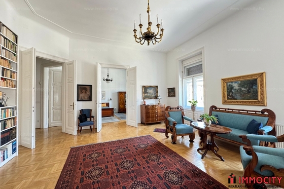 A tér felé néző három, fényben úszó, egybenyíló, impozáns nagy szoba zavartalan, teljes intimitást biztosít, a két kisebb szoba a másik front felé tájolt. Az elegáns, minden apró részletében felújított, átalakított lakásban a gyönyörű konyha teljesen szeparált. Két fürdőszoba, sok beépített tárolóhely, háztartási helyiség egészíti ki a minden szempontból varázslatot lakóteret.