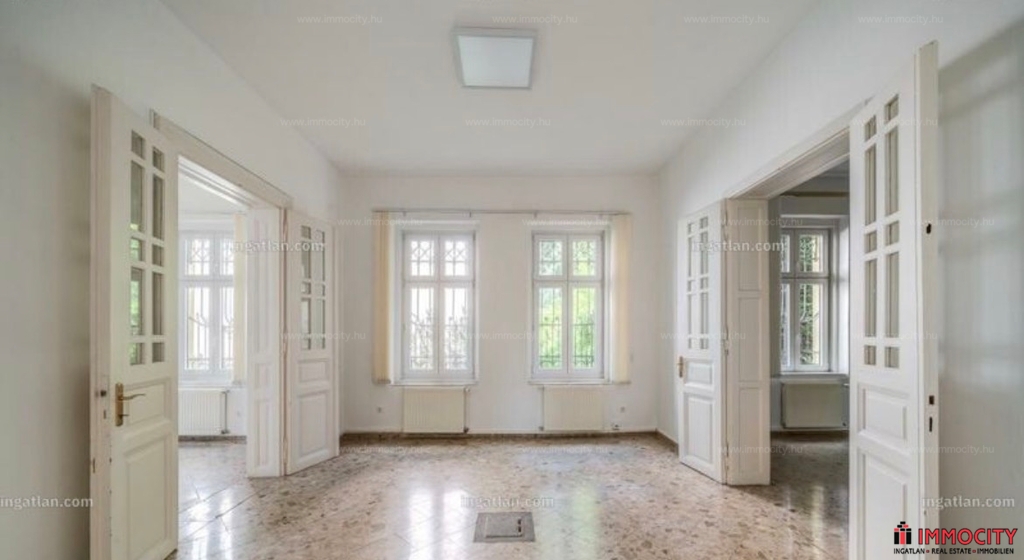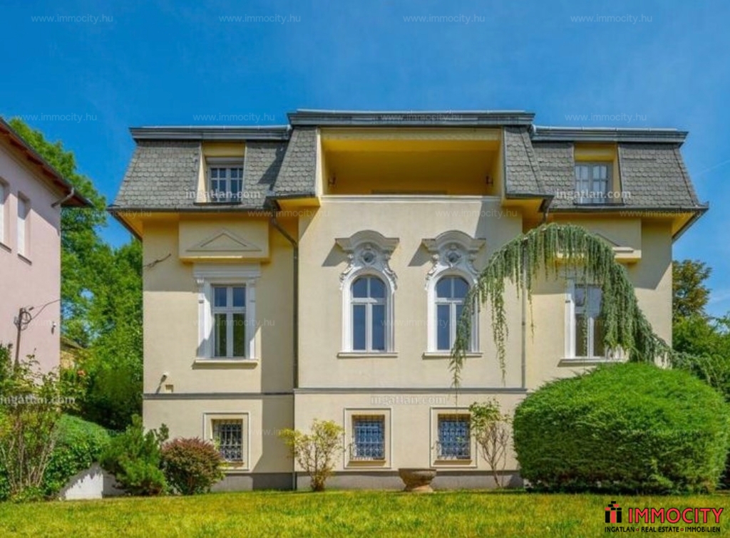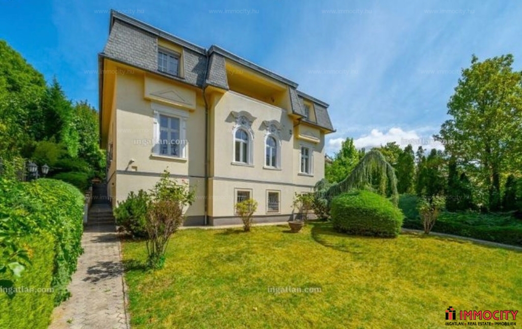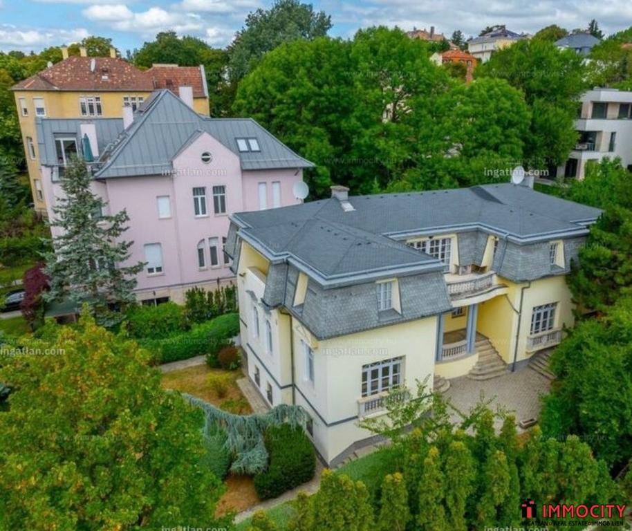 Rózsadomb gyönyörű zöldövezetében klasszikus villák szomszédságában hosszú távra kiadó egy 638 m2-es 3 szintes déli fekvésű napfényes villaépület.