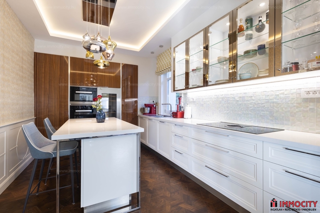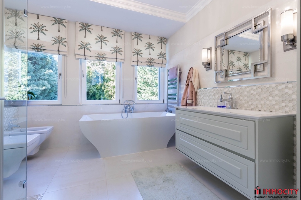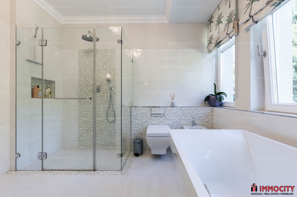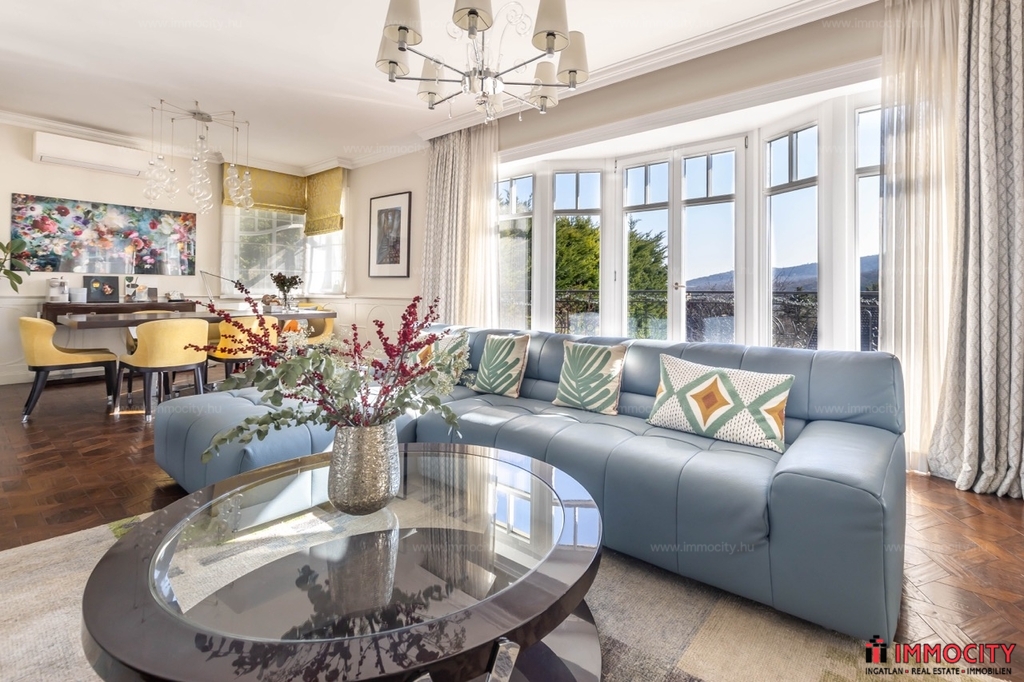 Nagyon különleges, praktikus, elegáns és minden részletében minőségi otthon tágas terekkel, kényelmi kiszolgáló helyiségekkel, teraszokkal, kerttel, szép kilátással.