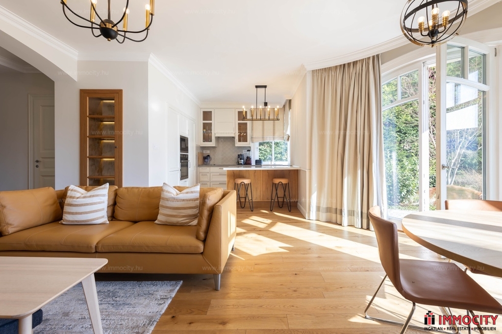 Tökéletes zöldövezeti környezetben, a Hűvösvölgyi úttól 3 percre, csendes mellékutcában található épület néhány évvel ezelőtti teljes felújítása során nyerte el jelenlegi, rendkívül impozáns és minden részletében minőségi állapotát.
