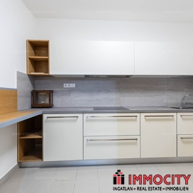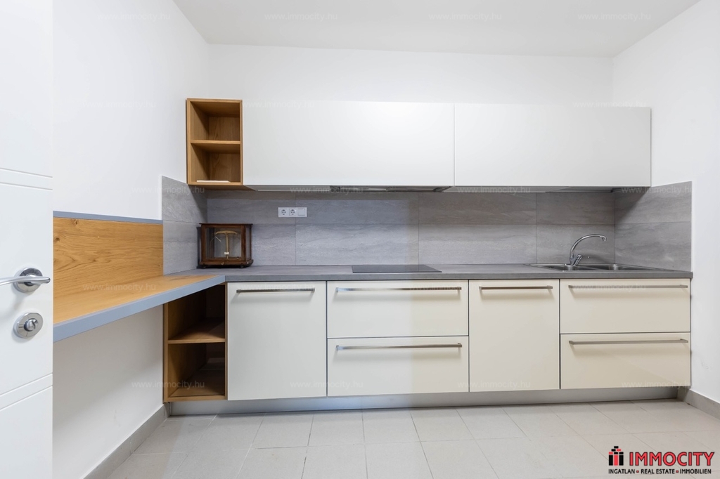 A kertkapcsolatos 93m-es lakás tágas, napfényes amerikai konyhával felszerelt nappaliból, 2 hálószobából, 2 fürdőszobából és garderobe helyiségekből áll,